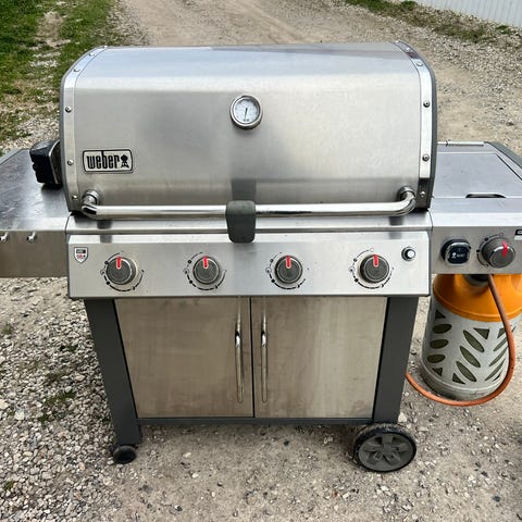 Genesis 2 - 4 år gammel. Fungerer godt - og med en del tilbehør inkl Rostisseri, iGrill til app og cover. Nypris i alt 11.000. Kommer uden gasflaske. Det ene hjul sidder løst. Kom og hent den!