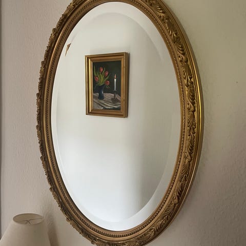 Spejl med ornamenteret guldramme