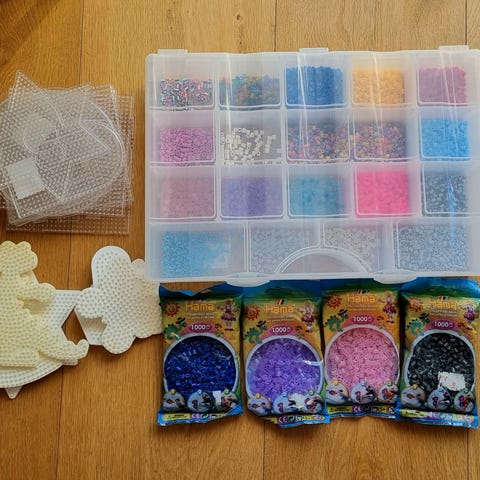 Her får du MASSER af perler og perleplader. Her er for virkelig mange penge. Sender senest dagen efter 😊