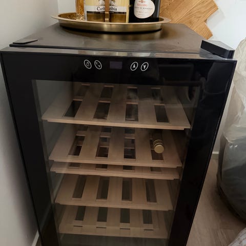 Med kun 15 cm i bredden passer dette vinkøleskab ind, hvor andre ikke kan. Glaslåge med metalramme, justerbar temperatur og intern belysning giver den perfekte ramme om dine vine. Kan bruges til indbygning eller fritstående.