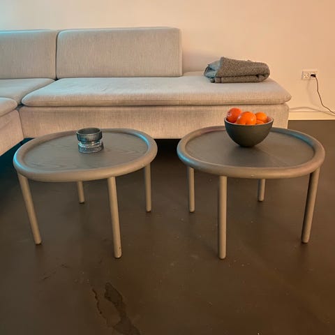 Three ikea small tables, metal. Please buy all of them, pick up in Hedehusene. Can be indoor or outdoors.