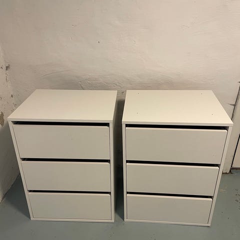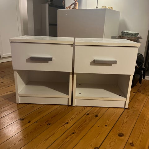 2 sengeborde/sideborde i træ og med 2 skuffer