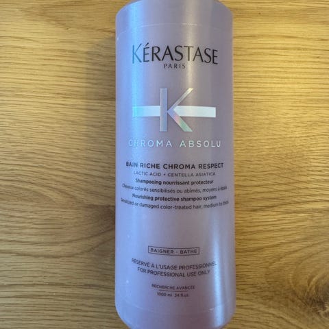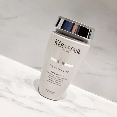 Kérastase Densifique Bain Densité shampoo i 1000 ml flaske. Shampooen er en del af Densifique-serien og er udviklet til hår med synligt manglende fylde. Indeholder blandt andet hyaluronsyre og gluco-peptider ifølge ingredienslisten. Produktet er angivet til professionel brug