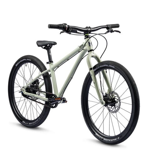 Woom 5 børnecykel med 24" hjul i blå og hvid. Udstyret med original bagagebærer, støtteben og skærme samt en lås. Cyklen har lidt skræmmer og andre brugsspor, men den kører og bremser upåklageligt.