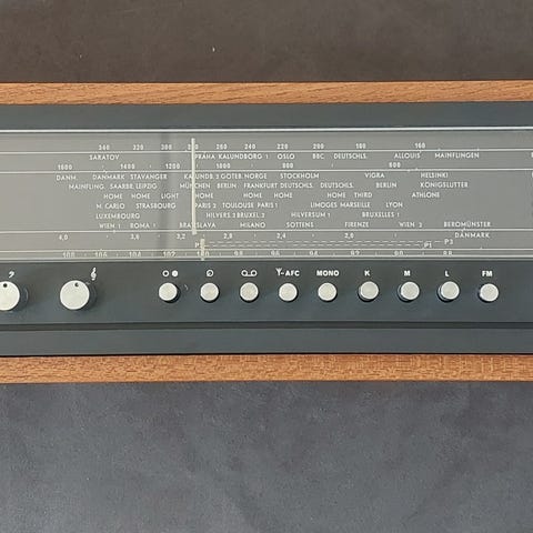 Bang & Olufsen Beomaster 900 radio med indbyggede højttalere i træfinish. Enheden har frontbetjening med skala til forskellige radiobånd og integrerede højttalere i hver side af fronten. Kabinettet er udført i trælook, og bagsiden har tilslutninger til eksterne enheder og antenne. Velegnet som stationær bordradio Radioen er i meget flot stand 700 kr eller kom med et fornuftigt bud