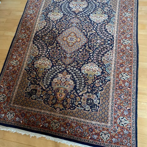 Her får du et flot vintage ægte tæppe i rigtig god kvalitet.
