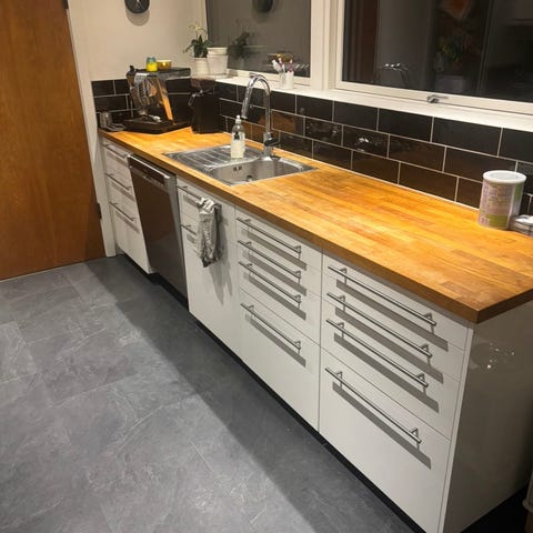 Brugt IKEA køkken sælges inkl bord plade som dog trænger til en kærlig hånd.
