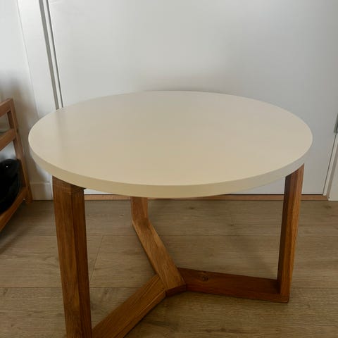 Materials: White lacquered MDF tops with sturdy oak legs.