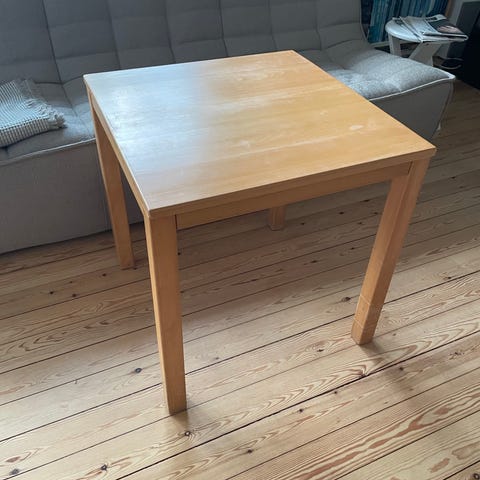 Sofabord i lyst træ, sæbebehandlet.