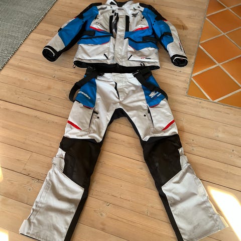 Dane motorcykelbukser i sort, størrelse 106. Motorcykeljakke str 56. Jeg tror det svarer til str xl