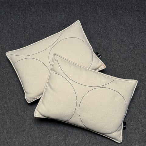 Hay pyntepuder med cirkelmønster i sort og orange. Puderne har et enkelt, grafisk udtryk med påsyede cirkler på forsiden. De egner sig til brug i sofa, lænestol eller på seng som dekorative puder og ekstra støtte. Velegnet til stue, soveværelse eller andre opholdsrum, hvor der ønskes et enkelt, farverigt tekstilindslag. De skal lige støvsuges, derfor den billige pris.