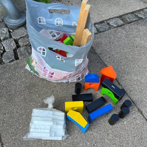 Brio træbyggesæt fra 1985. Anbefales til børn over 3 år. Sættet er komplet og fint, dog er opbevaringsæsken slidt. Kan efter aftale også sælges fra Ølsted ved Frederiksværk