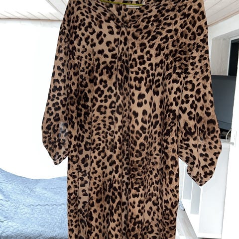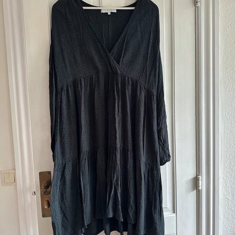 Lækker oversized kjole/tunika fra Global Funk i let denimlook med bindebånd i halsen og voluminøse flæser. Passer bedst en str. M vil jeg sige.