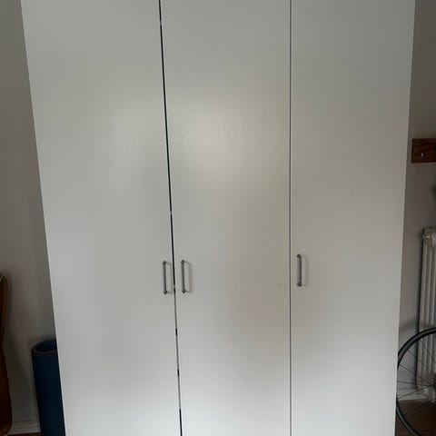 Hvidt Pax garderobeskab fra IKEA sælges til 800 kr (ny pris er 2300 kr).
