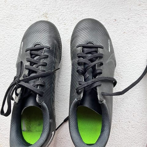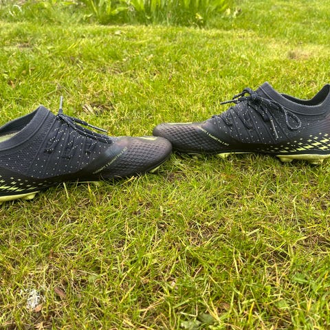 Puma fodboldstøvler i størrelse 38 (EU), svarende til UK 5 og US 6. Støvlerne er sorte med knopper under sålen, egnet til spil på græs. Overdelen er i syntetisk materiale med snørelukning for justerbar pasform. Velegnet som fodboldstøvler til børn eller mindre fødder.