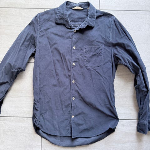 Les Deux skjorte til herre i størrelse L. Skjorten er blå og fremstillet i bomuld. Klassisk model med lange ærmer, krave og knaplukning foran samt knapper ved manchetterne. Velegnet til hverdagsbrug eller mere formelle anledninger afhængigt af styling.