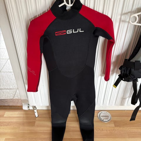 er sort med mønstrede detaljer og er mærket med GUL-logo. Jakken er blå med diskrete mønstre og lynlås. Sættet er egnet til vandsport som sejlads, surfing eller andre aktiviteter på vandet, hvor der er behov for isolering og beskyttelse mod kulde. Størrelse M ifølge mærkat på indersiden. Prisen er for det hele !! Plus fragt.