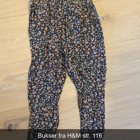 H&M bukser til pige i størrelse 116. Bukserne er sorte og fremstillet i bomuld. Modellen har lange ben med let svaj forneden. Velegnet som hverdagsbukser til børn i den angivne størrelse.