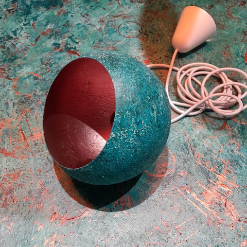 1 stk håndmalet Globe Ø20 loftlampe i irgrøn / turquoise/ patineret kobbereffekt indeni.