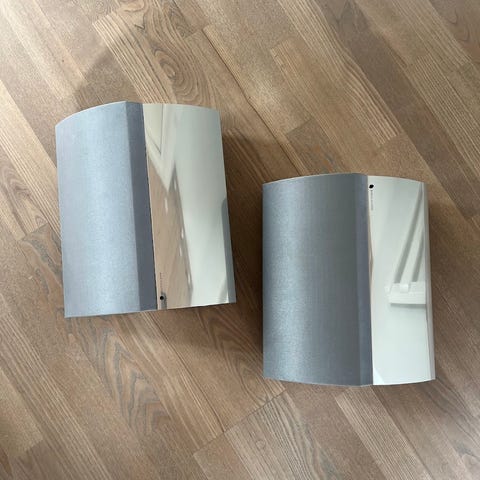 B&O Beolab 4000 i pæn og velholdt stand. Der medfølger net ledningerne og de originale vægbeslag. De spiller og fungerer perfekt og kan selvfølgelig prøves og høres. Enhederne er i perfekt stand (Se billede). Sender ikke grundet vægt og fare for skader. Pris er for et sæt. 2 sæt haves begge i sølv/grå og begge med vægbeslag og netledning.