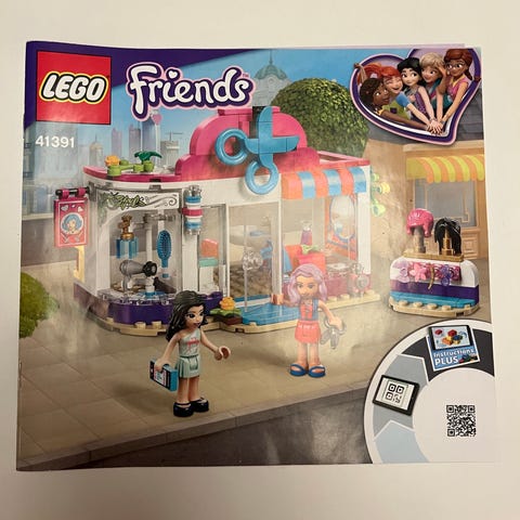 LEGO Friends sæt 41360. Sættet indeholder en lilla og hvid bil, en lille hundevaskestation, en minidukkefigur samt tilbehør som børste, madskål og flaske. Egnet til leg med LEGO Friends universet og dyreplejetemaer.