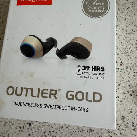 Creative Outlier Sports trådløse in-ear høretelefoner i farven neon grøn.