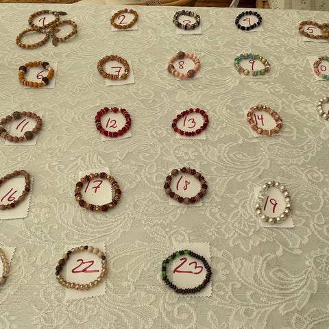 Armbånd på elastik med plastikperler.