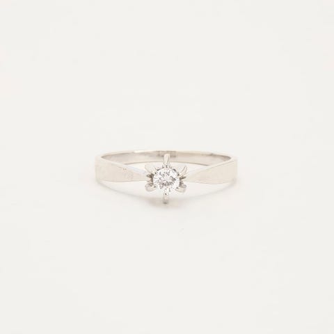 Klassisk Solitairering i 14K hvidguld med en diamant (0,05
