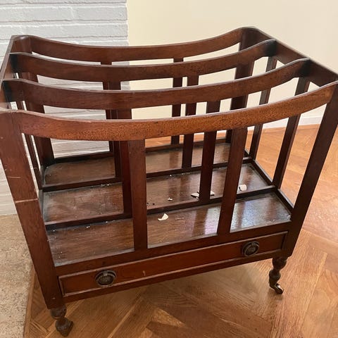 Der er bare noget helt specielt med de rigtig gamle bambus møbler, de er bare helt enkle og samtidig er der gjort så meget , metal dupper i enderne , hør vævning på træ hylderne smuk kryds samling ved benene , OSV. avisholderen har to rum og to hylder , mål 78 x 41 x 22 cm , de gamle kobber søm er udskiftet med messing skruer , ( se billeder ) , Søgeord ! Samler, rattan , jugendstil , skønvirke, indbo, antik, indretning, møbel, dekoration , Deco , pynt , samleobjekt, SENDER KUN MED DAO ELLER AFHENTNING.