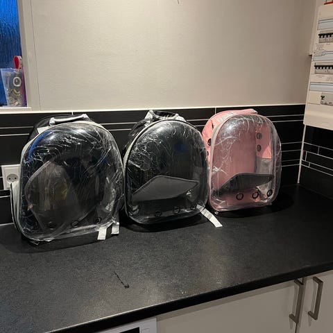 Kattesæt transportkasser hule og dobbelt madskål hvid og rustfrit stål