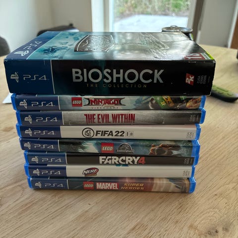 Alle spil er på fysiske diske i standard PS4-covers. Velegnet til Playstation 4 konsoller og til brugere, der ønsker eventyr-, superhelte- og bygge-/kreativspil i LEGO- og Minecraft-serierne.