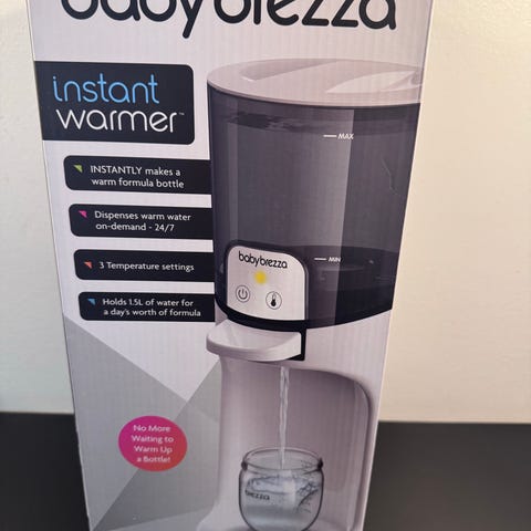 Babymoov Nutri smart flaskevarmer i bordmodel. Enheden har digitalt display og knapper på fronten til indstilling af temperatur og funktioner. Flaskevarmeren tilsluttes med ledning til stikkontakt.