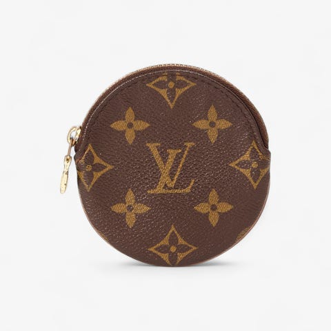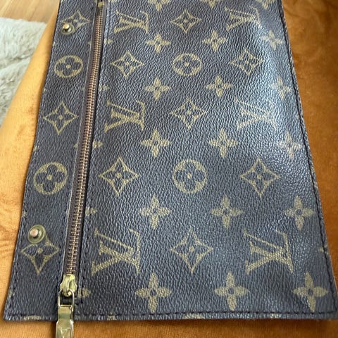 Fin LV Clutch fra 2018 i monogram med cherise inderfor.