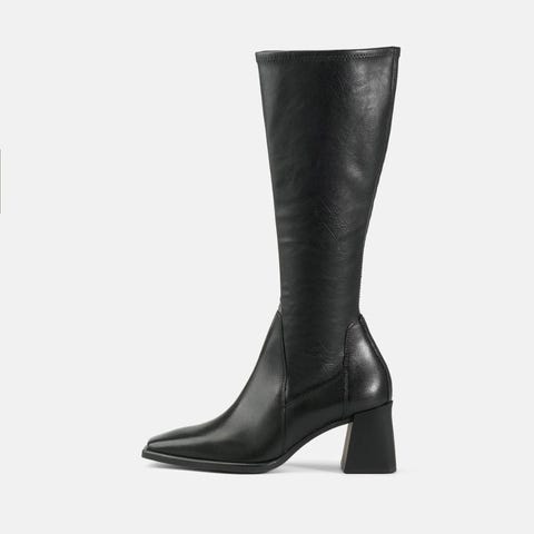Fejlkøb! ALDO støvler i sort, str. 37. Støvlerne har spids snude og blokhæl. Overdelen er en kombination af glat materiale og ribbet skaft, som går op over anklen. Velegnet til hverdagsbrug og mere formelle anledninger.