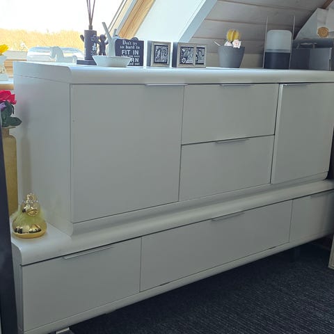 Kommode med 4 skuffer og spejl.