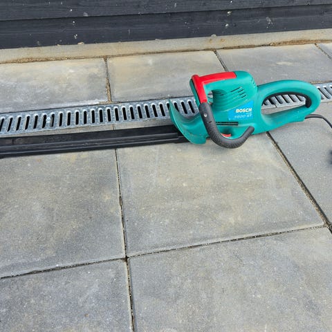 Bosch hækkeklipper elektrisk model med ergonomisk håndtag og sikkerhedsknap.