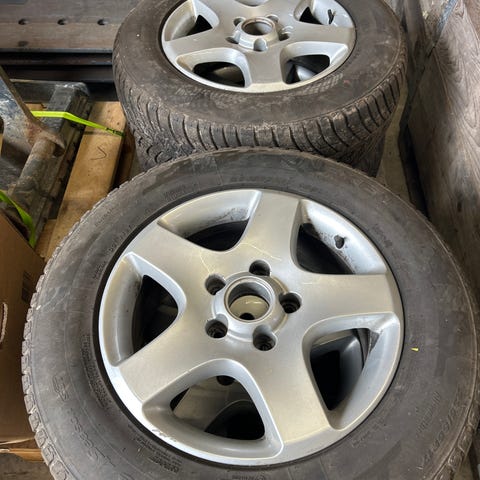 Vinterdæk på 14" alufælge. Kun kørt én sæson. Der medfølger bolte som jeg dog ikke kan mønter/mål på. Har siddet på en Hyundai i20.
