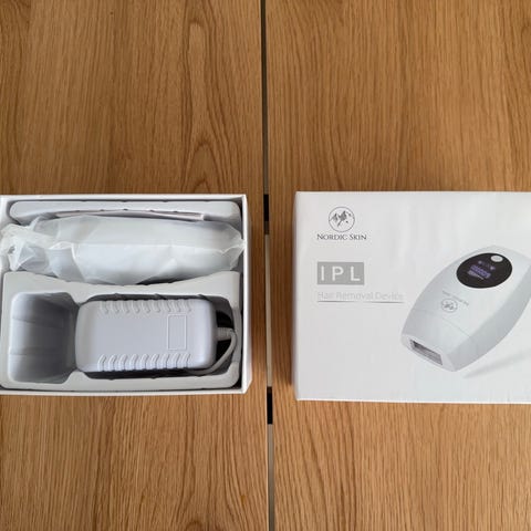 Braun IPL hårfjerningsapparat med flere udskiftelige hoveder til forskellige kropsområder. Sættet inkluderer håndtag med IPL-lys, strømforsyning med ledning, flere behandlingshoveder samt opbevaringstaske med Braun-logo. Velegnet til hjemmebrug af lysbaseret hårreduktion på krop og evt. ansigt efter producentens anvisninger. Farve primært hvid med lyse detaljer.