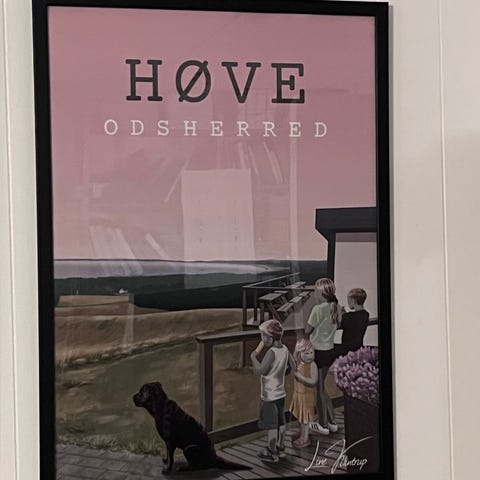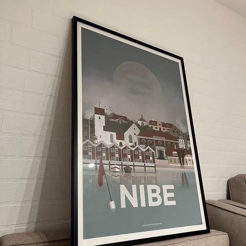 Klint Odsherred plakat med strandmotiv. Plakaten viser en strand med stendysser og kystlandskab. Leveres indrammet i en simpel sort ramme, velegnet til ophæng i stue, gang eller sommerhus for at vise et motiv fra Klint i Odsherred. Kunstneren er Line Klintrup.