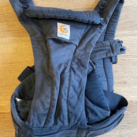Ergobaby bæresele i sort. Bæreselen har polstrede skulderstropper og hoftebælte med spænder, som kan justeres for at passe til den voksne. Selen er udformet til at kunne støtte barnets krop og fordele vægten over hofter og skuldre. Egnet til transport af spædbørn og småbørn efter producentens anvisninger for vægt og alder. Inkl. savlesmæk