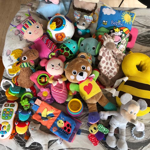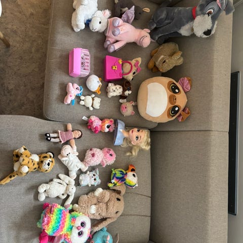 Fisher-Price interaktive plysdyr sæt. Sættet består af flere bløde plysdyr, herunder læringshunde med trykknapper på poter og krop, der kan aktiveres til leg og læring, samt en større elefantbamse. Plysdyrerne er velegnede til mindre børn og kan bruges til tidlig læring af ord og kropsdele samt til rolleleg og kram. Farverne er blandede med blandt andet beige, blå, lyserød og flerfarvede detaljer.
