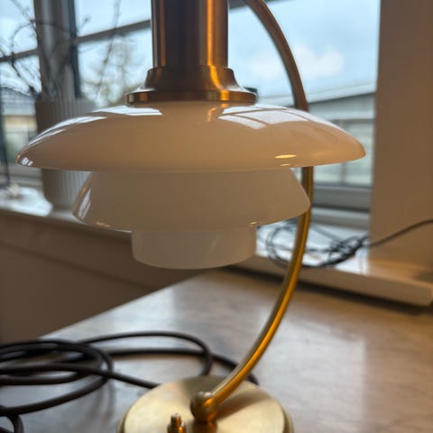 2 PH 2/2 bordlampe messing/blankt opalt glas