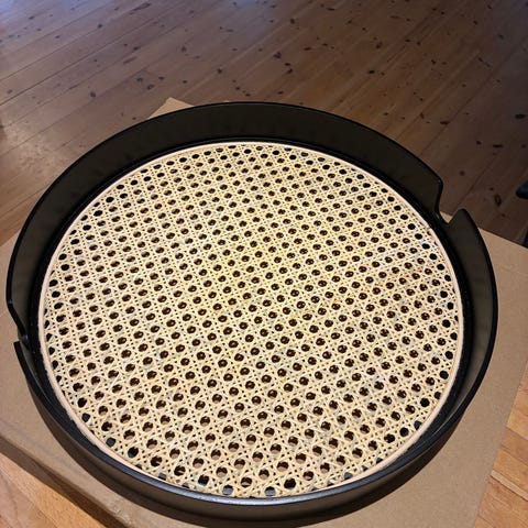 Hvidpigmenteret olieret egefiner. Diameter 30 cm. Kan spænde fra 11 til 16 cm. Fra ikke ryger hjem. Kan sendes på købers regning.