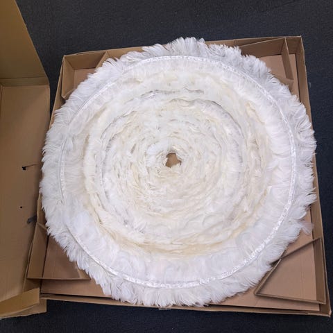 Fremstillet af cirka 6000 naturlige gåsefjer i lysegrå nuance