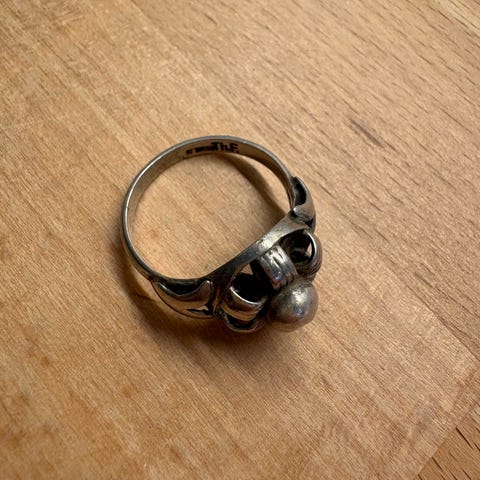 Super smuk vintage sølvring i skønvirke stil , jeg er ret sikker på stenen er karneol. Indvendig diameter 20 mm.