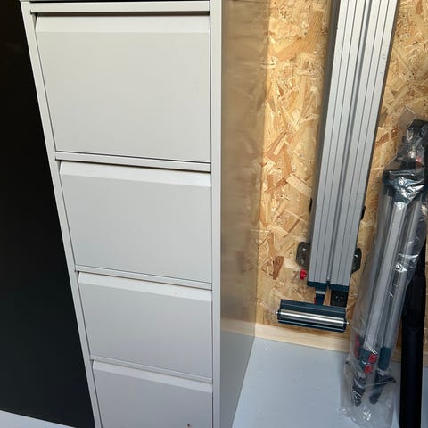 Metalskab arkivskab med 4 skuffer i hvid farve. Skabet er fremstillet i metal og er velegnet til opbevaring af dokumenter eller andet kontorudstyr.