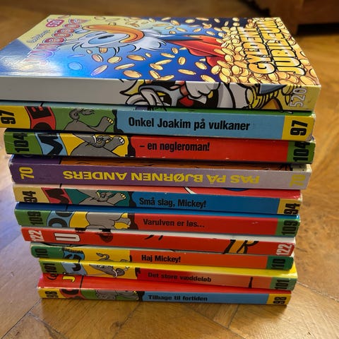 23 Disney Jumbobøger med bl.a. Anders And og Mickey Mouse sælges samlet til afhentning i Rødovre. Antal, numre og stand som ses på foto.