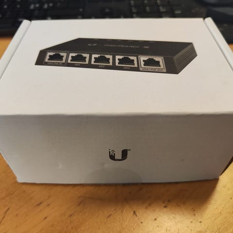 Rigtig god Ubiquiti Router med 5 RJ45 ethernet porte og usb-c strømforsyning. Den er meget ligetil at sætte op og brugerfladen er super intuitiv.
