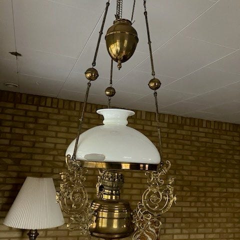 Fin gl. lampe til ophængning. Mangler skærm og glas