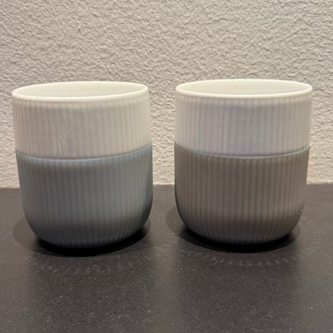 Kruset fra Royal Copenhagen har en elegant stil i porcelæn med en moderne følelse. Det har dekorative riller med håndmalede detaljer og et betræk i silikone for et bedre greb. Servér kaffe med charme.